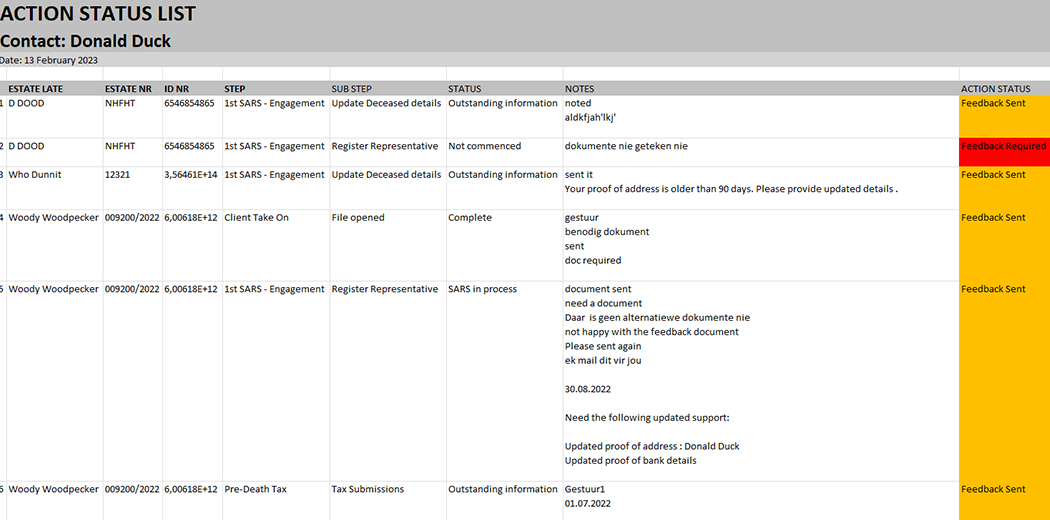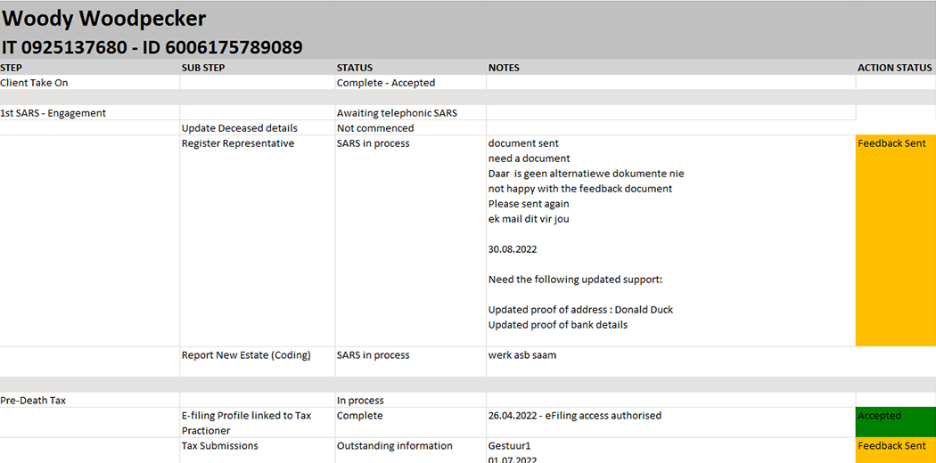 Finovo Fiduciary online service relieves the Executor or Appointed agent in dealing with the cumbersome pre-and post-death tax administration processes and SARS engagements. Our strength lies in a unique in-house system created to support and track the progress of estate tax. Combined with a strong dedicated Estate Administration Department with multiple Accountants and Tax Practitioners, you get a winning formula.